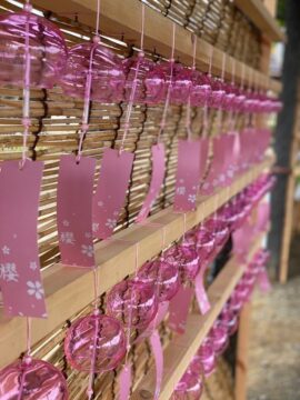 竹風鈴やガラス風鈴が飾られた園内で秋風を楽しめる。