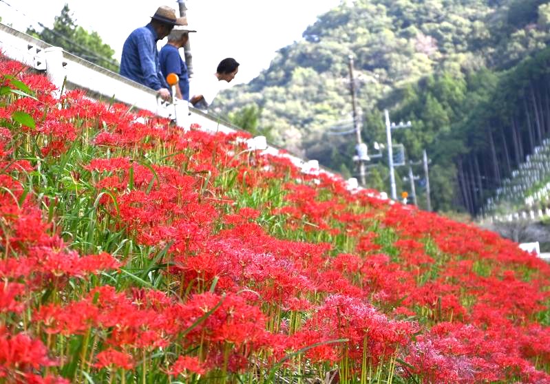 「古里の秋の目玉になれば」と、野部利司さん(87)らが20年以上前に植え、手塩にかけて育てている。その数は1万株にも及ぶという。