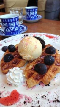 店では、パスタやホットサンドなどに加え、クロワッサン生地をワッフルにした韓国発祥のスイーツ「クロッフル」などを提供。コーヒーは、飲んだ後の余韻がお気に入りという「ただいまコーヒー」(同県日立市)の焙煎(ばいせん)豆を使う。