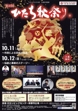 日本を代表するアーティストによる特別ステージや茨城の郷土芸能と次世代へと繋ぐ子供たちのステージ、日立の食のエキスパートが提供する味覚とさまざまな日本文化体験のワークショップが世代を越えて楽しめる日本の文化・芸能・食の祭典。