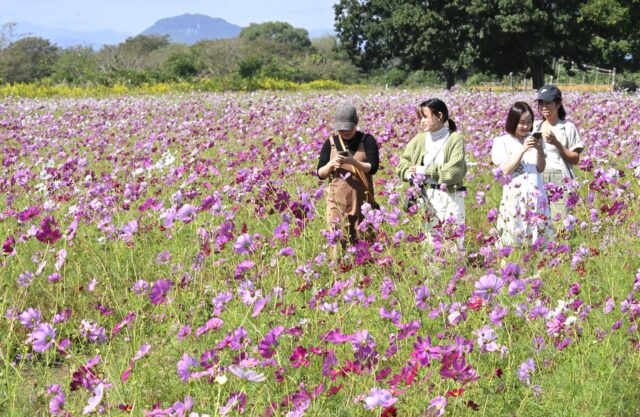 約120万本のコスモスが最盛期を迎える鬼怒グリーンパークで、期間中は売店が営業。5日、12日、19日の日曜日にはイベントも行われる。