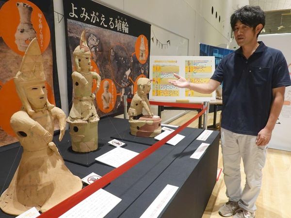 茨城県東海村発足70周年記念の特別企画展「時間旅行(タイムトラベル)へようこそ-東海村から届いた招待状-」が同村村松の村歴史と未来の交流館で開かれている。「時空列車」に乗って、村の時代を太古からほぼ現代まで時空を超えて旅をしながら、途中下車して巡る趣向で、村の「お宝」の形象埴輪(はにわ)をケース越しでなく生で見られる機会にもなっている。