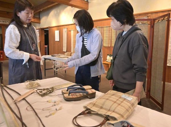 茨城県那珂市瓜連地区に伝わる古代の織物「倭文織(しづおり)」の作品展が、同県水戸市見川の偕楽園公園センターで開かれている。同織物の復興に取り組む機織りサークル「手しごと」(三ツ石敏会長)が原料となるコウゾの栽培から手がけ、バッグやランプシェードなど暮らしになじむ50点に仕上げた。同展は26日まで。