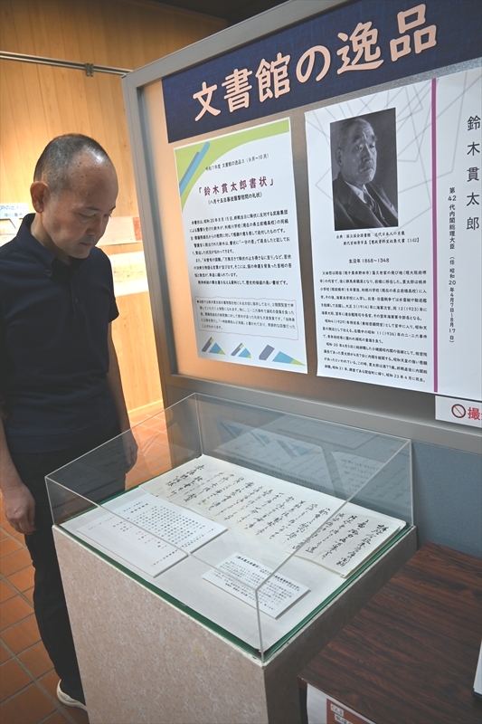 太平洋戦争終戦時の首相で子ども時代を前橋市で過ごした鈴木貫太郎(1868~1948年)が、敗戦直後に友人へ宛てた書状を紹介する展示会が30日まで、同市の県立文書館で開かれている。