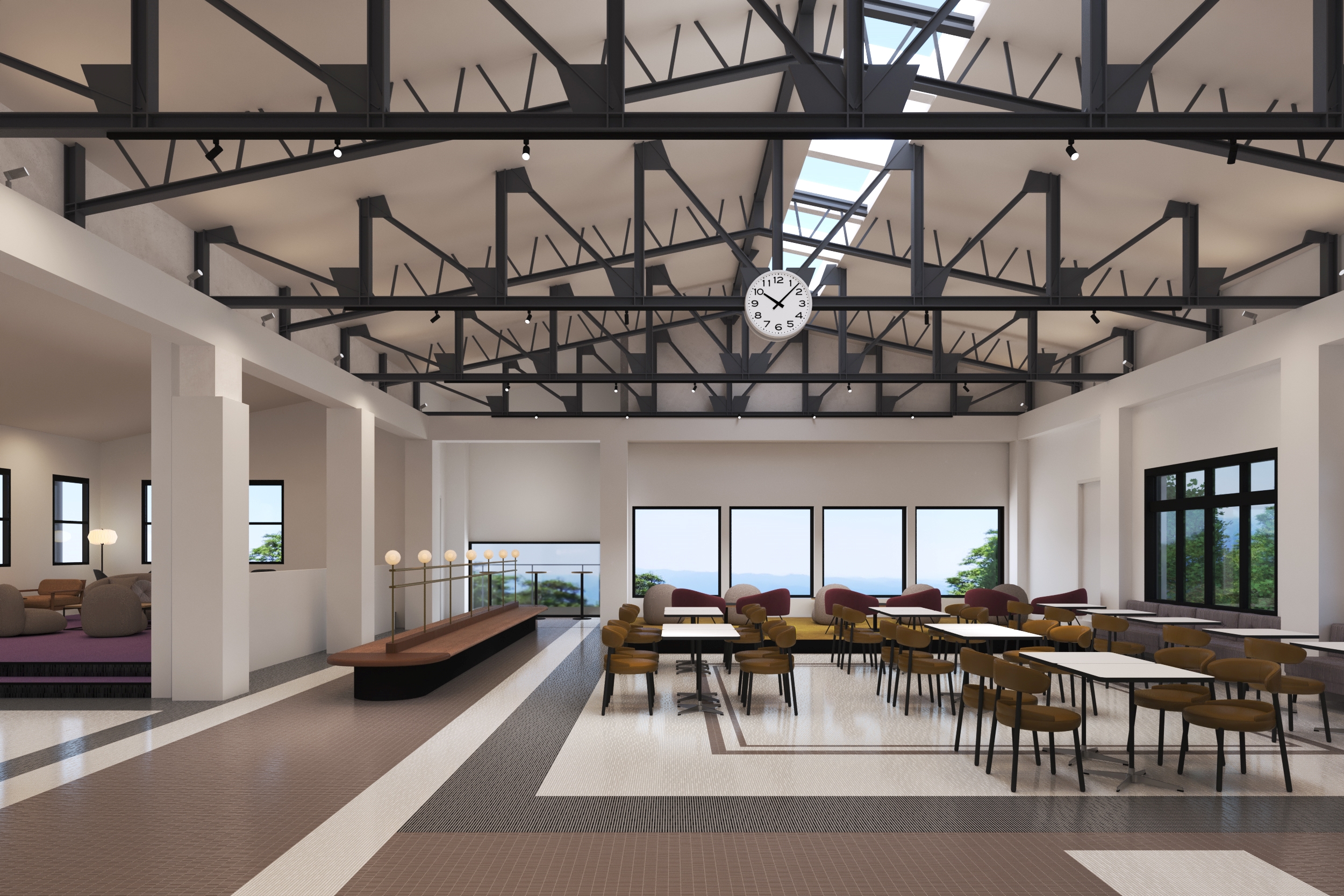 内装は趣のある駅舎の雰囲気を生かし、むき出しの梁(はり)に存在感のある時計を設置する予定。糸井さんが「名画に匹敵する」と表現する風景を存分に楽しめるよう窓を大きく改修した。テラスからは、雲海が出現することもある眺望を味わえるという。