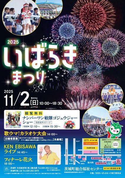 茨城県茨城町最大の秋のイベント「2025いばらきまつり」(同実行委員会主催)が11月2日、同町小堤の町総合福祉センターゆうゆう館前駐車場で開かれる。特産品の販売や地元グルメ、ステージイベントなど盛りだくさんの内容で、恒例の花火大会がまつりのフィナーレを飾る。