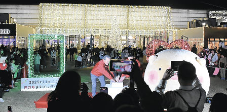 群馬県前橋市の道の駅まえばし赤城で、イルミネーション点灯式が行われ、約20万球のLEDが多くの親子連れを楽しませた=写真。来年2月28日まで。