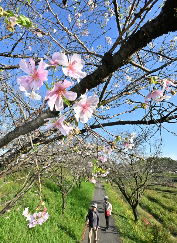 公園を東西に横切る道路沿いに40本ほど植えられており、道行く人が眺めていた。