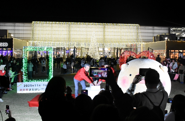 ハートのフォトスポットや約6メートルの巨大クリスマスツリーが設置され、敷地内が光り輝く。