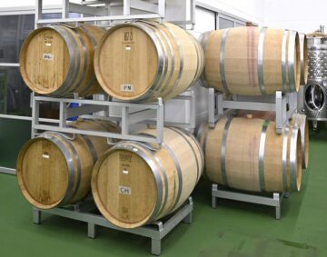 8月下旬~10月上旬にかけて収穫したブドウは保冷庫で保管し、実と茎に分けてから赤ワインは皮ごと、白ワインは果肉を絞る。絞り出した果汁をタンクに流し、皮や種を入れて低温で数日間漬け込む「低温浸漬(しんせき)」を行うことで、豊かな香りを引き出す。約2週間発酵させた後、たるに移して乳酸菌発酵を約1カ月行い、鋭い酸味のリンゴ酸を乳酸に分解。まろやかな口当たりに仕上げる。