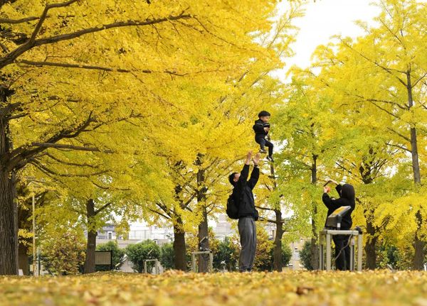 県民の日の13日は、広場を駆け回る子どもたちや、並木を散策する愛犬家など、老若男女でにぎわった。市内の女性(67)は「今がまさに見頃という感じ。とってもきれい」と声を弾ませた。