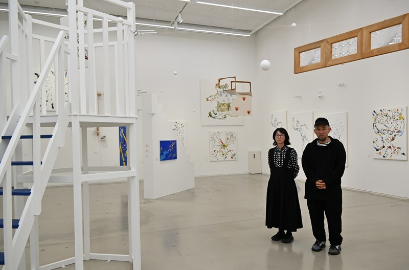 アーティスト・ユニット「原倫太郎+(プラス)原游」の作品を紹介する「バベルが見る夢」が22日、太田市美術館・図書館で始まる。らせん構造の同館を「バベルの塔」に見立て、その内部を想像したインスタレーション(空間芸術)作品や市内の小学生がワークショップで制作した絵画など計103点が並ぶ。1月18日まで。