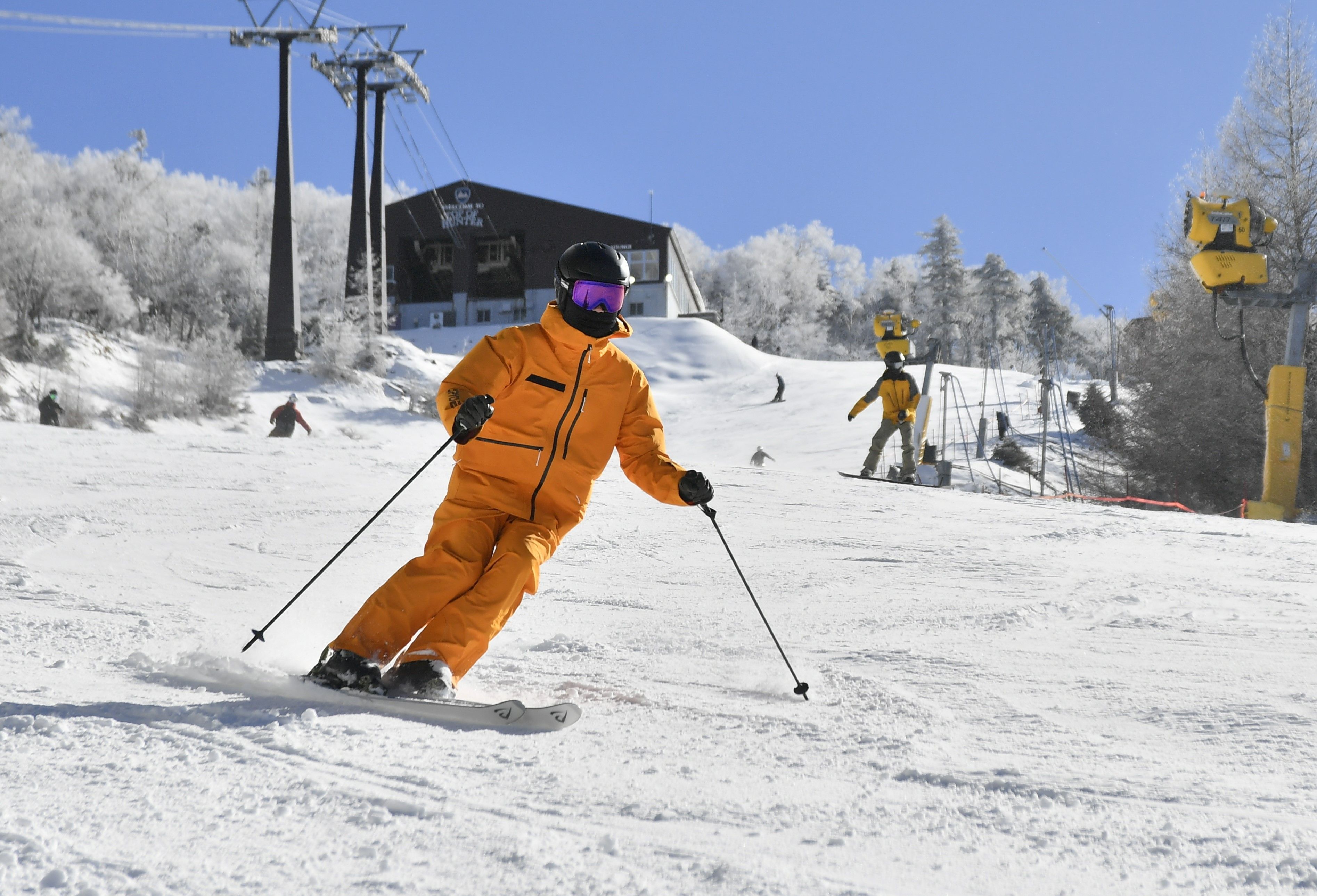 この日は青空が広がる絶好の陽気の中、スキーヤーらが白銀のゲレンデにシュプールを描いた。