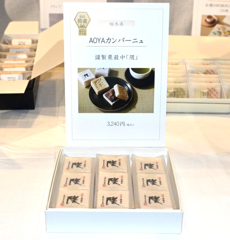 飲食店情報サイト運営会社「ぐるなび」(東京都)は20日、東京都内で、秘書が選ぶ「接待の手土産セレクション2025」の特選品の発表会を開いた。栃木県小山市のカフェレストラン「AOYA CAMPAGNE(アオヤカンパーニュ)」の「謹製栗最中『隈(くま)』」など20点を選び、表彰した。