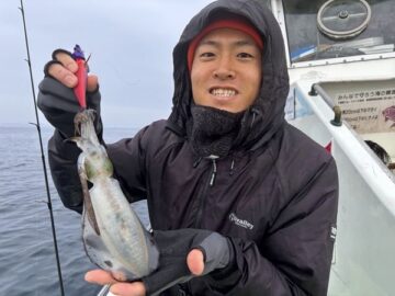 この日釣果を大きく左右したのは「カラー選び」だった。曇り空で光量が少なかったこともあり、紫系など「シルエットがくっきり出るカラー」にアタリが集中。同船者がパープル系に替えた途端、立て続けにヒットを重ね「その色、当たってるね!」と笑いが広がった。