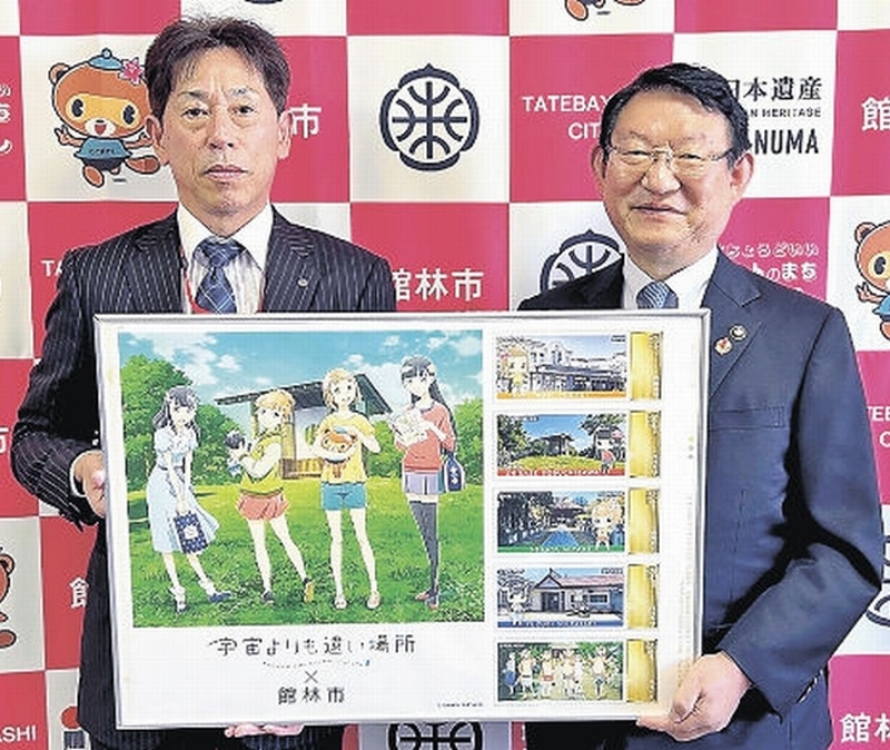 群馬県館林市の女子高生の青春を描いたテレビアニメ「宇宙(そら)よりも遠い場所」(通称・よりもい)の登場人物をデザインした特別な切手が15日に数量限定で発売される。作中で取り上げられた市内スポットの風景写真と主要キャラクターのイラストを組みわせた切手、ポストカードの販売を通して、ファンの満足度アップと同市の知名度向上を狙う。