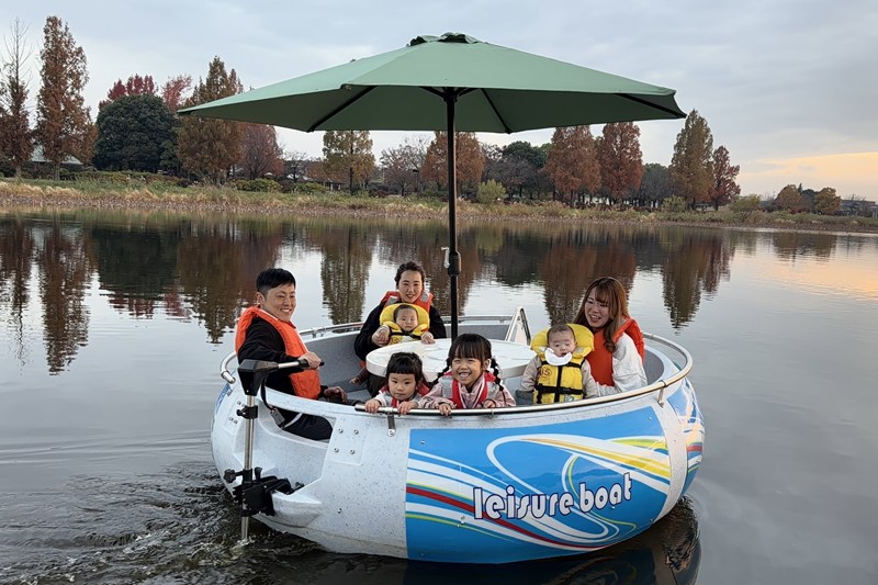 船体は直径2.5メートルの円状。日よけのパラソルと甲板中央に円卓が設置されていて、 持ち込んだ食事や飲料を並べることもできる。動力はモーターで駆動音が少ないのが特徴。利用者が思い思いに運転できる。