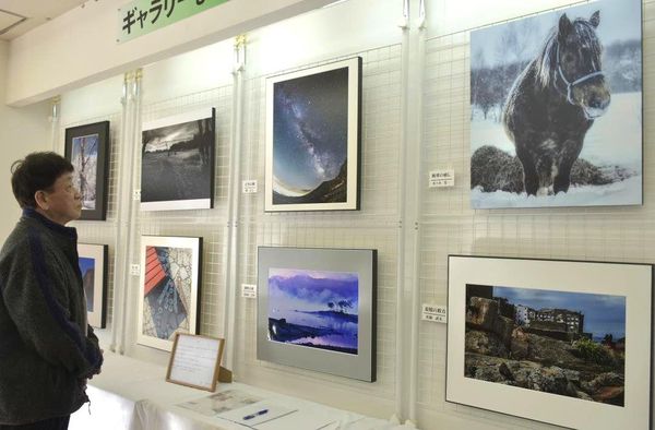 茨城県高萩市の写真愛好家が出展する「S8man 写真展」が、同市春日町の「高萩やすんでっ亭」で開かれている。旅先の風景や動物、樹木など幅広いジャンルの写真が並ぶ。同展は24日まで。