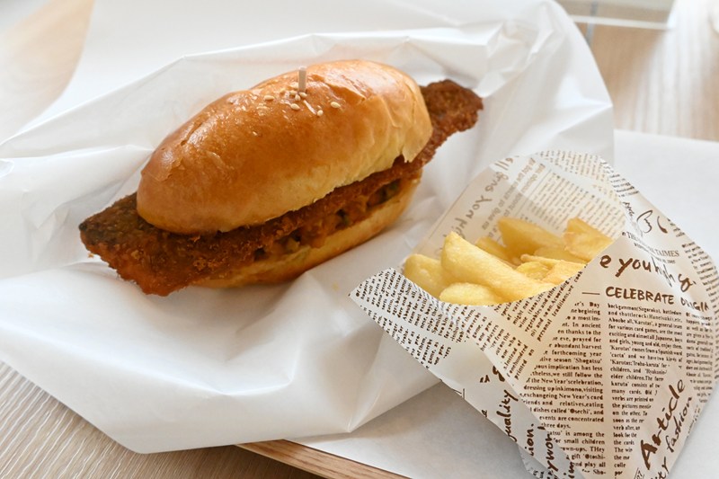 群馬県の多野藤岡地域の高校生らが考案したニジマスを使った「コラボバーガー」の販売が20日、群馬県藤岡市の飲食店「風丸キッチン」で始まった。ニジマスのフライと、ニジマスのひき肉を使ったカレーソースをパンで挟んでいる。21、27、28日の土日に、1日20食限定で販売する。