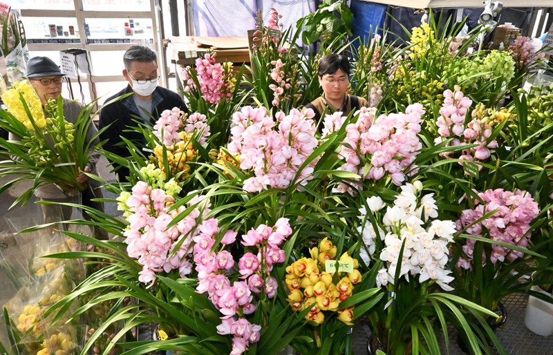 同園はコチョウランやカトレアなど約300種の洋ランを販売する。丈夫な品種のシンビジウムが最も人気で、手入れをすれば3カ月ほど花が続くという。