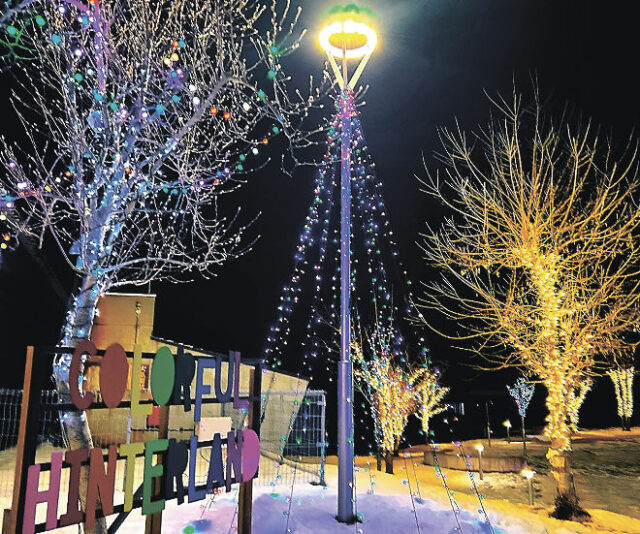 道の駅「尾瀬かたしな」で、1万個の発光ダイオード(LED)を飾った木々などが色鮮やかに輝いている。
