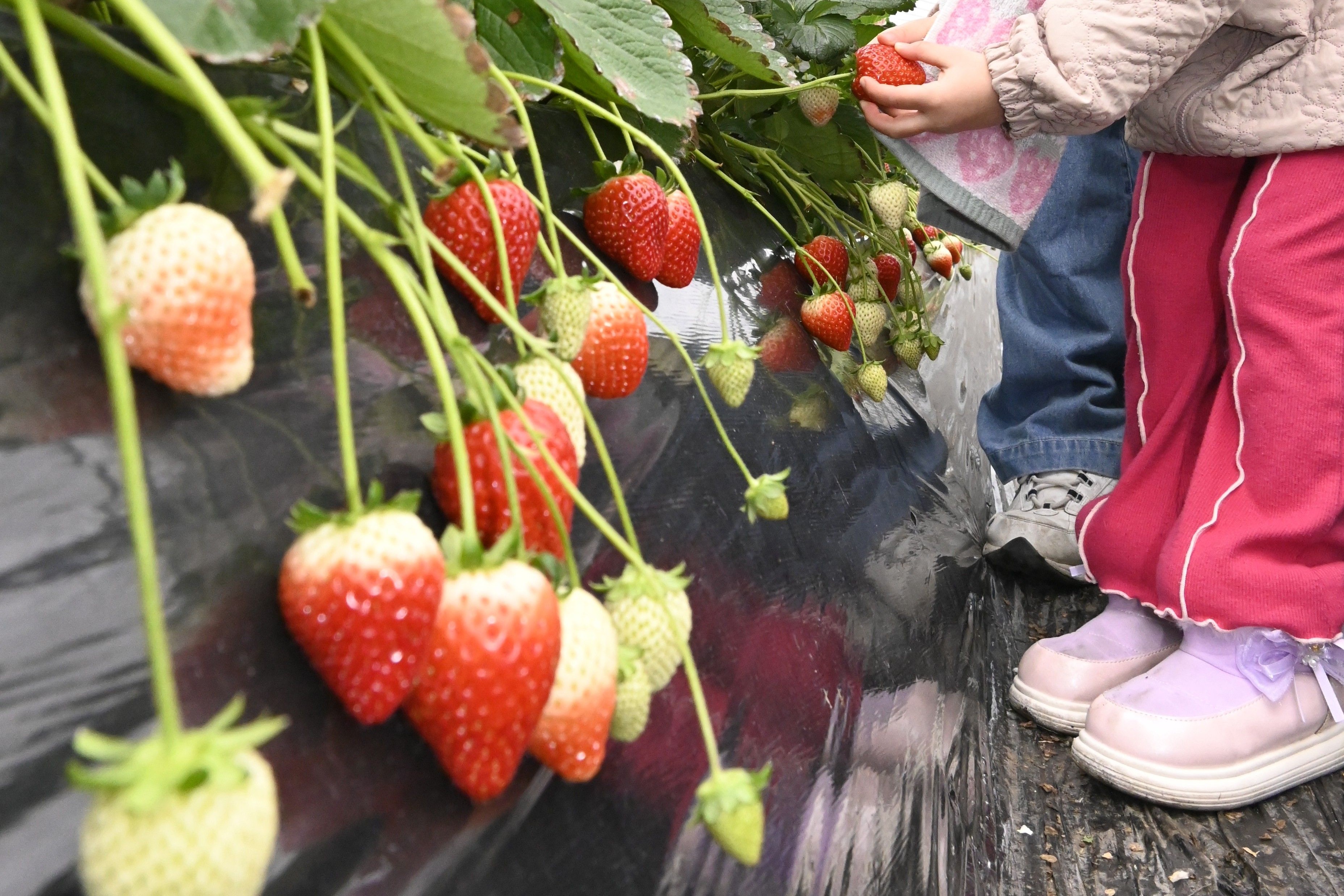 この日は午前9時を過ぎると、家族連れらが甘い香りの漂うハウスに続々と入場。熱心にえりすぐって摘み取った完熟のイチゴを次々と口に運び、「甘い」「大きい」などと感嘆の声を漏らしていた。