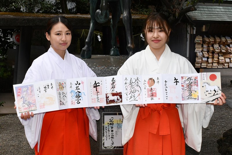 市内の神社を多くの人に参拝してもらおうと2年前に始めた企画で今年で3回目。進雄神社禰宜(ねぎ)の高井大樹さん(44)は「馬の御朱印を集めて、群馬への愛着を深めてもらえれば」と話している。