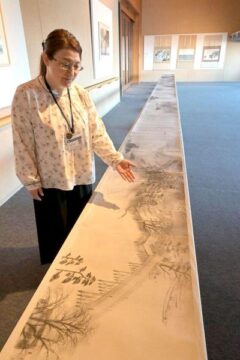 全長40メートルを超す横山大観の画巻「生々流転」の複製画=北茨城市大津町