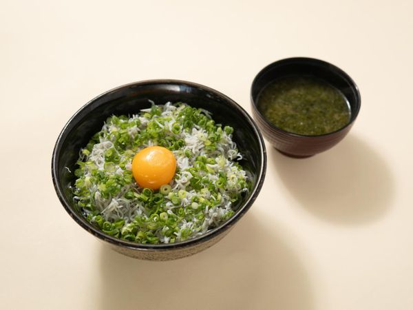 「大津港のしらす丼」は、同県北茨城市で水揚げされたシラスと薬味のネギをたっぷりと使用。温かいご飯と合わせた柔らかい口当たりが好評で、幅広い年代が地元の磯の風味を大いに堪能できる。1300円。