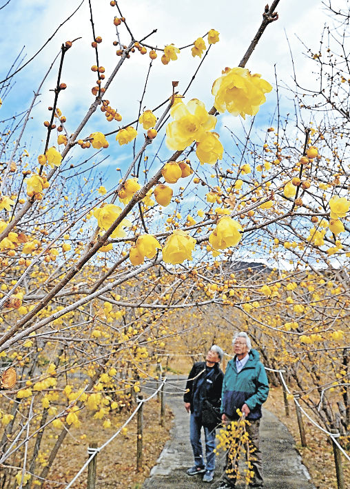 ロウバイ1万2000本が甘く香る 群馬・安中市のろうばいの郷で見頃