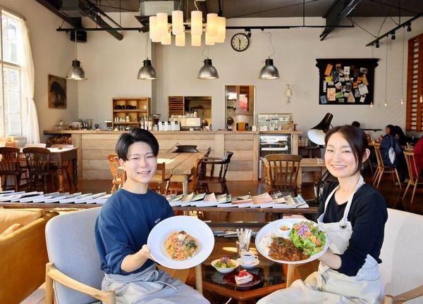 カフェで人気を集めるのは、煮込み料理やサラダ、グリル野菜、ブルスケッタ、ライ麦パンなどを盛り付けた「BBプレート」(税込み1650円)と各種パスタ、ライスプレート(いずれも同1540円、サラダ付き)。パスタはトマトとクリームの各種ソースに旬の食材を組み合わせ、ライスプレートはグリーンカレーやビーフストロガノフなど、それぞれ数種類を日替わりで提供している。料理は基本的に手作りで、カフェマネジャーの作田梨奈さん(29)は「体に優しく、見て楽しめるメニューを心がけている」と話す。