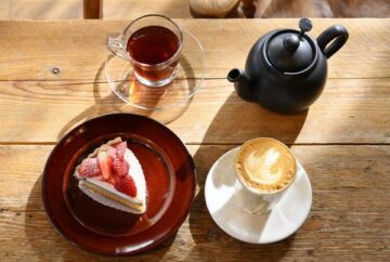 イチゴのタルト、BBラテ、紅茶
