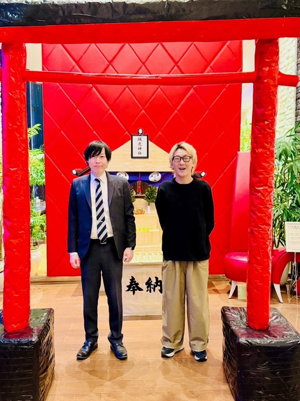 ホテルサンダーソンを運営する天国社中央(前橋市天川大島町)の福井謙一社長(43)が、親交のあるLACCO TOWERから依頼を受け、従業員が神社と鳥居を手作りした。31日にはホテルを貸し切り、ファンクラブ会員を対象にしたライブを行う。