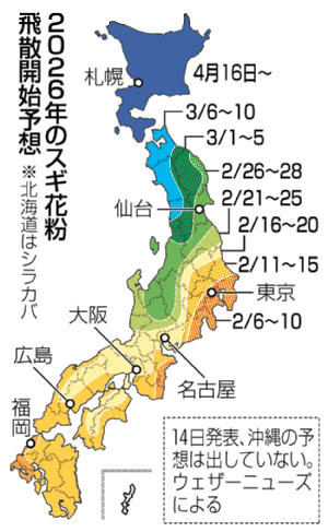 民間気象会社ウェザーニューズ(千葉市)は今年の花粉飛散予想を発表した。