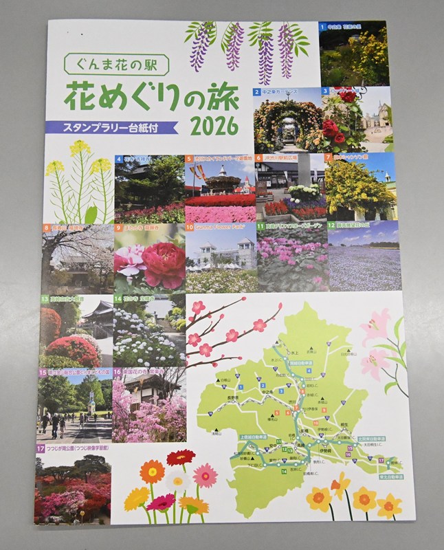 群馬県内の花の名所17施設でつくる「ぐんま花の駅ネットワーク推進協議会」は、スタンプラリー「ぐんま花の駅 花めぐりの旅 2026」を2月1日から始める。花の駅に登録された観光施設や寺、駅などを回り、見頃の花を楽しんでもらう。7月31日まで。