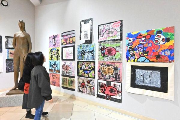 障害のある作家らによるリサイクルをテーマにした作品展「大島藤倉学園アール・ブリュット展」が、茨城県笠間市笠間の笠間日動美術館で開かれている。障害者支援施設、大島藤倉学園(東京都大島町)の利用者が制作したアート作品約90点を展示している。