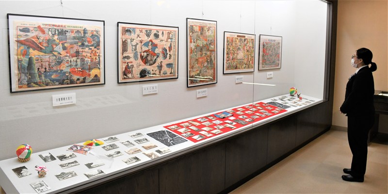 明治から昭和初期までの絵すごろくと絵はがきを紹介する企画展が2月26日まで、群馬県渋川市伊香保町の徳冨蘆花記念文学館で開かれている。文学館所蔵の絵すごろく16点と絵はがき約400点が会場を彩っている。