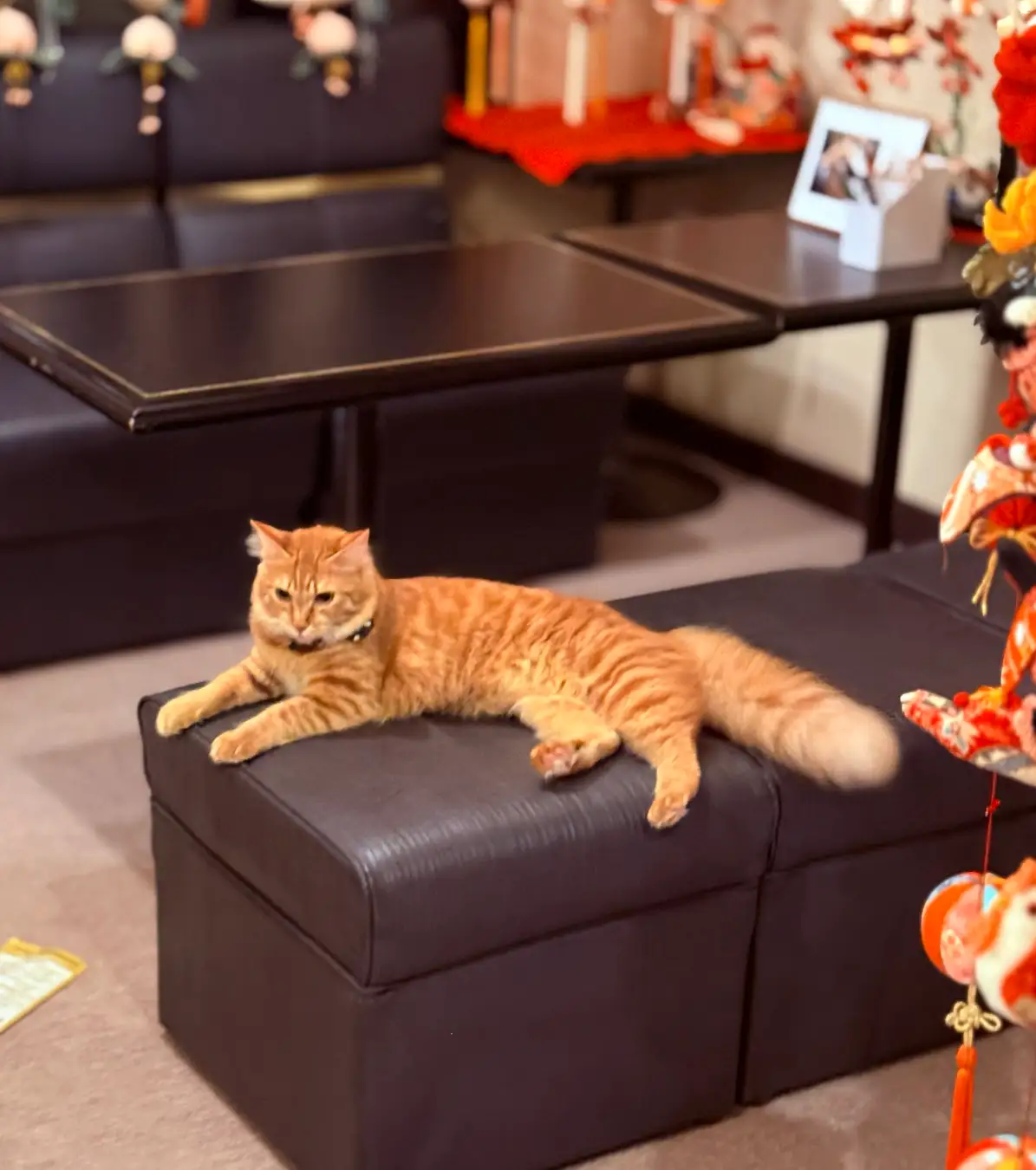 山口屋旅館の「みみたん」は、ふわふわの長毛ともふもふの尻尾が可愛いらしいチャトラ柄の猫。性格は人懐っこくておしゃま、食いしん坊で好奇心旺盛な“おてんば娘”だという。
