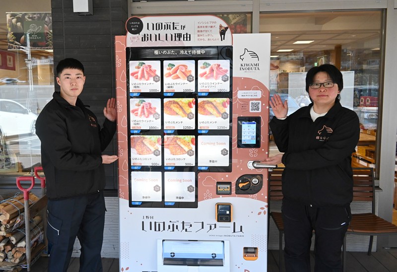 小池農場長は「24時間購入できる自販機が広告塔の役割を果たし、多くの方にイノブタを知ってもらうことにつながれば」と期待を込めた。