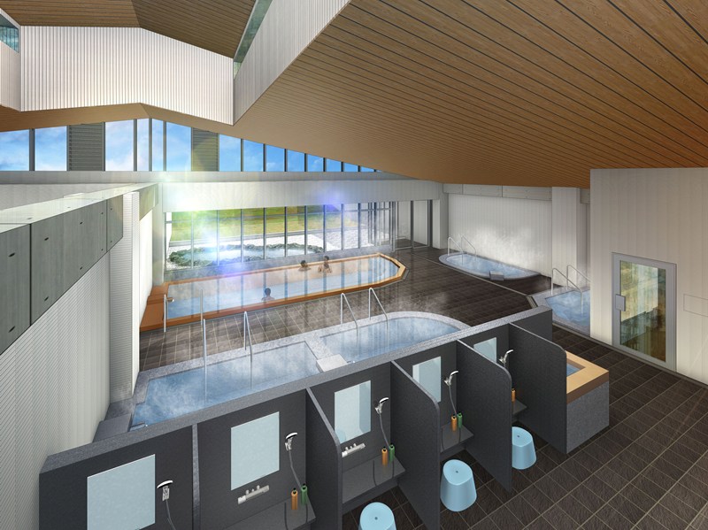 市営の「かたくりの湯」(同所)の後継施設として、市が2024年10月に着工した。市によると、新施設は平屋建てで延べ床面積約2100平方メートル。浴場の広さは男女各169平方メートルで、ピーク時に40人が同時利用できる。190平方メートルの大広間、和洋の個室や多目的室、売店、軽食コーナー、足湯、130台分の駐車場を備える。総事業費は32億3700万円。
