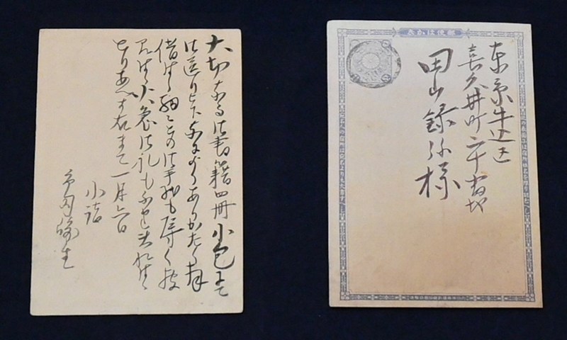 2人は洋書などを貸し借りしており、書籍が届いたことに対する藤村からの礼状のほか、藤村が花袋に宛てて入院中の幼い長女の容体や その後亡くなったことを知らせたはがきが展示されている。