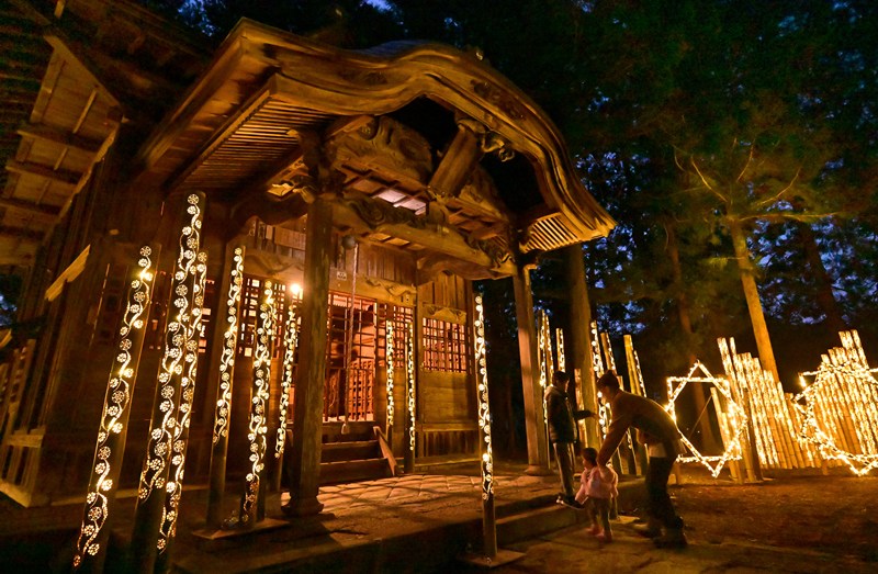 竹灯籠で里山に癒やしの明かり 3月3日まで「たくみの里」(群馬・みなかみ町)の熊野神社