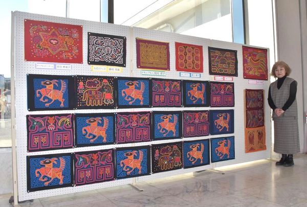 茨城県常陸太田市の手芸サークル「布遊(ふゆう)」(松本敏江代表)と中米パナマの手芸「モラ」の二つの作品展が、同市中城町の市民交流センター・パルティホールで開かれている。カラフルなつるし飾りと、鮮やかな配色でユーモラスなデザインのモラ作品が春の訪れを感じさせる。両展は3月5日まで。
