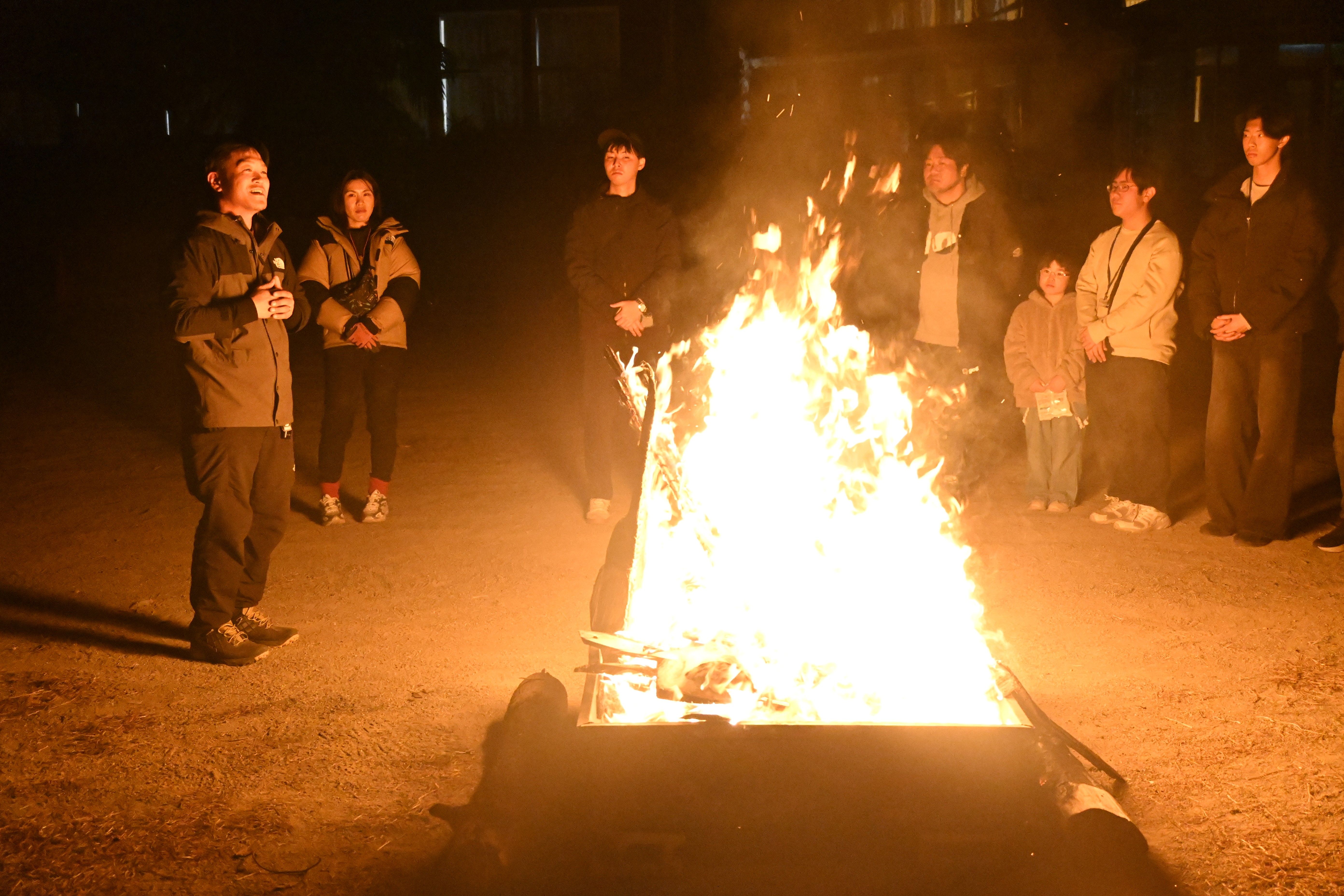 夜には同校でキャンプファイアを囲みながら、長井の高原林産の白石盛人専務による里山保全の実態に関する講話を聞いた。白石専務は伐採が保全にどうつながるのかや、間伐の役割について分かりやすく説明した。