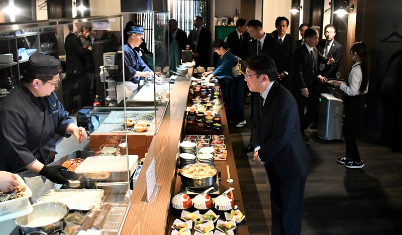 式典で、新美香社長は「新たなチャレンジとしてオープンキッチンを取り入れた。調理する音や香りなど、五感で楽しめる空間が出来上がった」とあいさつ。篠原邦也名誉会長は「忌憚(きたん)のない意見をいただければ」と呼びかけた。