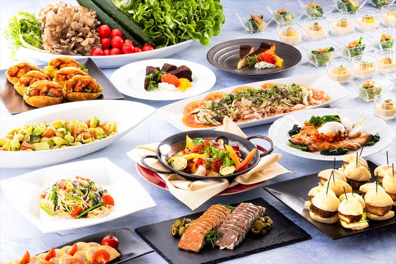 2500円からのランチビュッフェは、肉・魚・ライス・パスタ・和食からメインを選択。さらに各種オードブル、スープ、和の総菜など約20種類のビュッフェが味わえる。