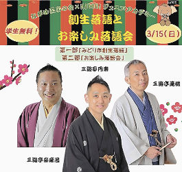 エンタメ・文化群馬「落語の魅力知って」 三遊亭円楽さんら招き落語会 15日にみどり市のながめ余興場上毛新聞2026年3月8日みどり市教育委員会は15日、みどり市のながめ余興場で落語家の7代目三遊亭円楽さんらを招いた「創生落語とお楽しみ落語会」を開く。円楽さんのほかに、三遊亭楽麻呂さん、三遊亭萬橘さんも登場。「創生落語」や得意の噺を披露する。当日は午後1時半~3時40分。学生以外や市外の人も観覧可(入場料500円)。未就学児は入場不可。定員500人。事前申込制で桐生、みどり両市の学生はみどり市教委社会教育課(☎0277-76-9846)へ。それ以外は市内のシイナ(☎0277-73-4147)か、足利屋洋品店(☎0277-73-1212)に電話した上で、チケットを購入する。関連ニュース 住民寄付の本で図書館「ASAMABUNKO」オープン 群馬・長野原町の北軽井沢住民センター 「みんなで育てる本棚に」 郷土に残る安吾の足跡 没後70年で資料展 群馬・桐生市 国定忠治の一生を紙芝居で 石原さん(群馬・伊勢崎市出身)が創作しお披露目 前橋まつりにミッキー 市内小学生と特別パレード 10月12日実施 群馬・前橋市 地図を開く 近くのニュース