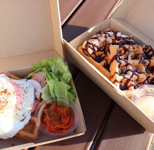 また「サーモン&アボカド」「ベーコンエッグ」の食事系のワッフル(900円)がある。