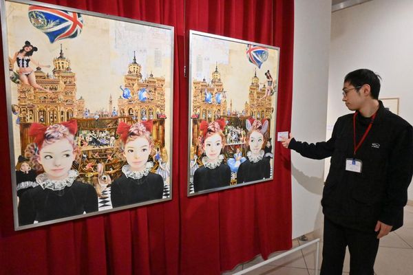 細部まで描き込まれ、じっくりと見応えある作風が特長。同展の目玉となる「少年王国」シリーズは、少年を主人公に不思議な世界を描いている。2枚一対の「少年王国〈アリス、君はどっちなの?〉」は一見左右対象に見えるが、耳が生えていたり、アリスがウサギになっていたりと無数の違いがある。