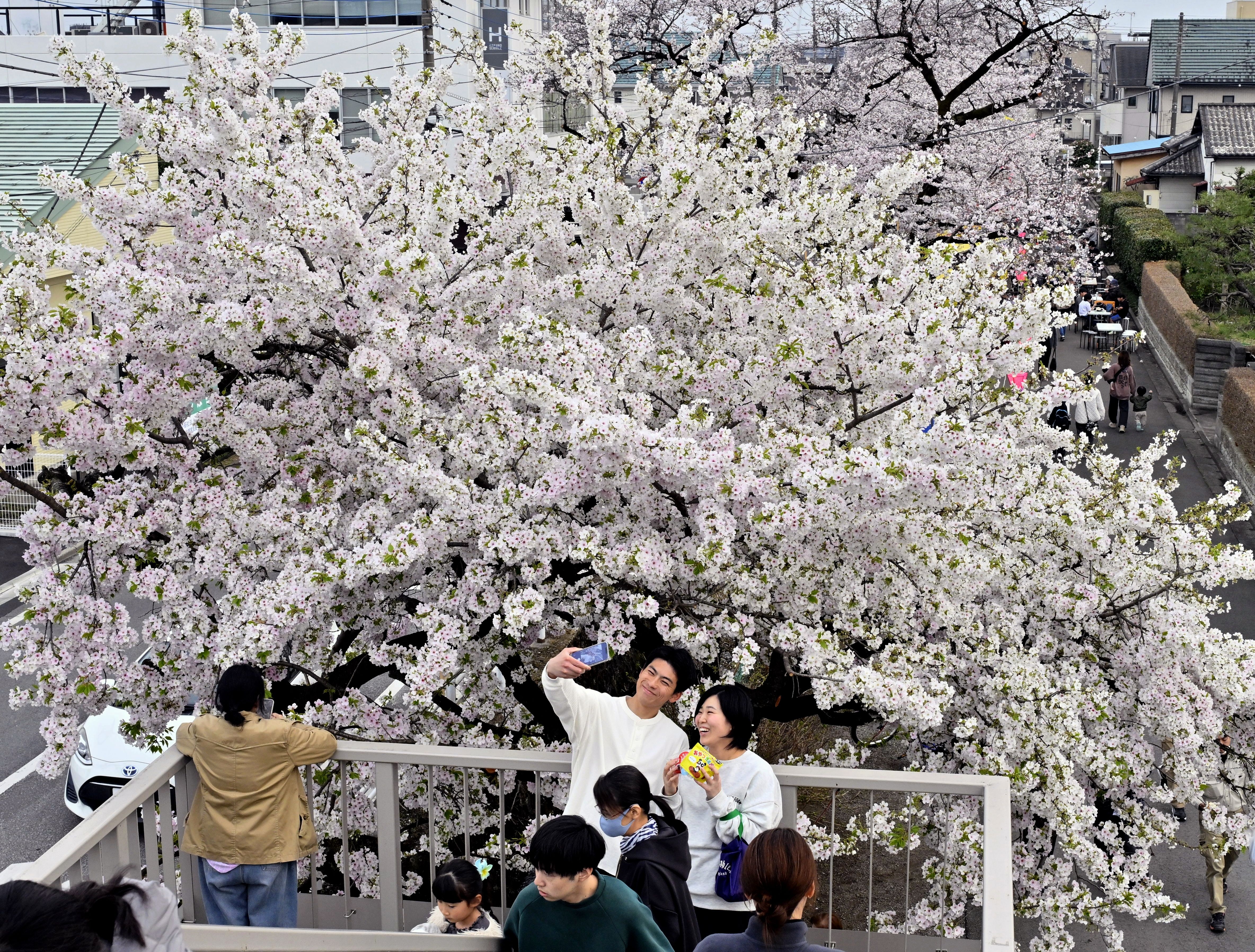 宇都宮市の名所「新川桜並木」で桜満開 歩道橋が絶好のフォトスポットに